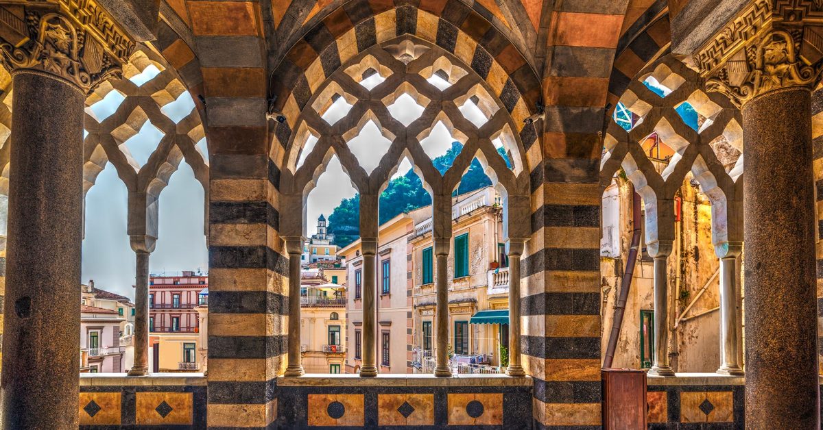 Il centro storico dell’abitato di Amalfi, si sviluppa sulle imponenti terrazze di roccia scura che si affacciano sul mare, offrendo in ogni angolo scorci panoramici e viste mozzafiato sul golfo di Napoli e il Vesuvio. Stradine tortuose e suggestive scalinate conducono al porto ed alla Marina sottostante.
